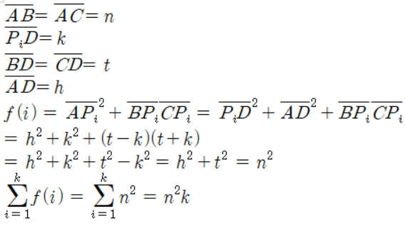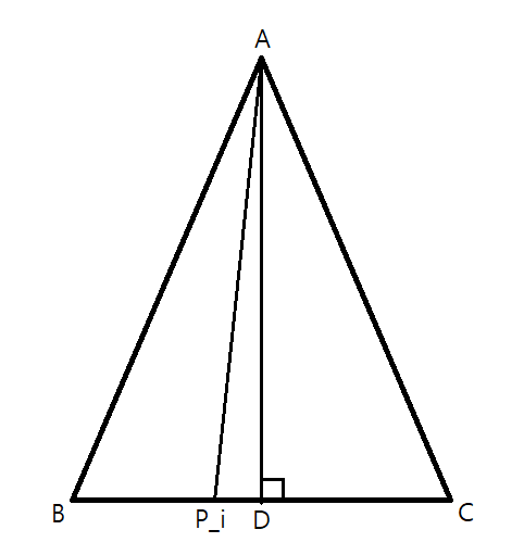 맨날 학교 칠판에 이등변삼각형을 그리고 노는 피카츄가 어느 날, 칠판에 변 AB와 변 AC의 길이가 모두 N인 이등변 삼각형을 그린 다음, 친구들에게 아래와 같은 문제를 냈다. 이등변삼각형 ABC에��