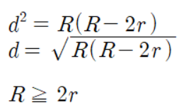 위 그림에서 식은 R>=2r일 때만 성립한다.