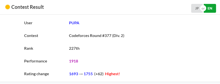 이번엔 퍼플 퍼포가 나왔다. 기뻤지만 이번 D까지 문제가 쉬운데다가 E도 쉬웠는데 문제 이해를 계속 못하는 바람에 풀지 못했던게 너무 아쉬웠다.